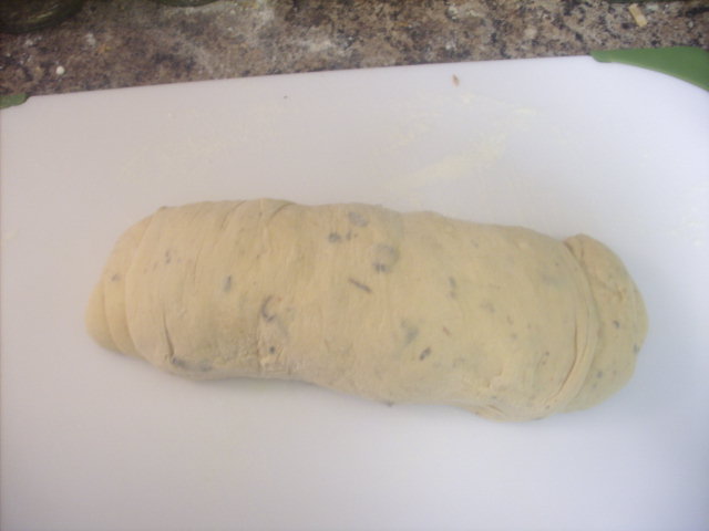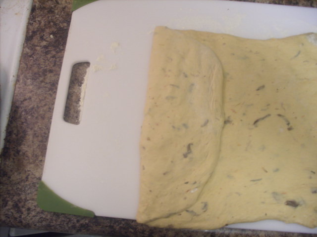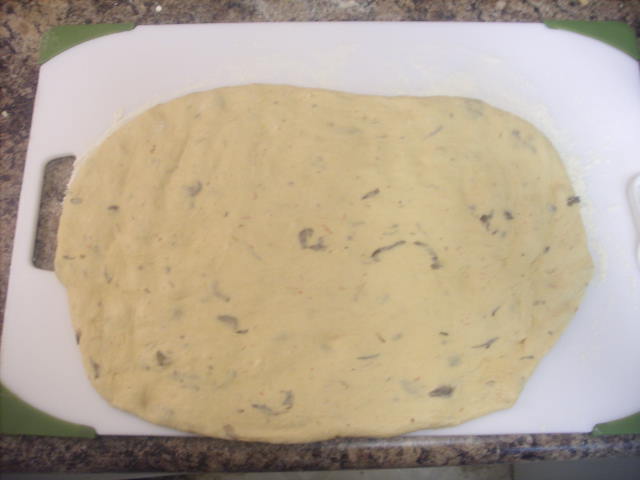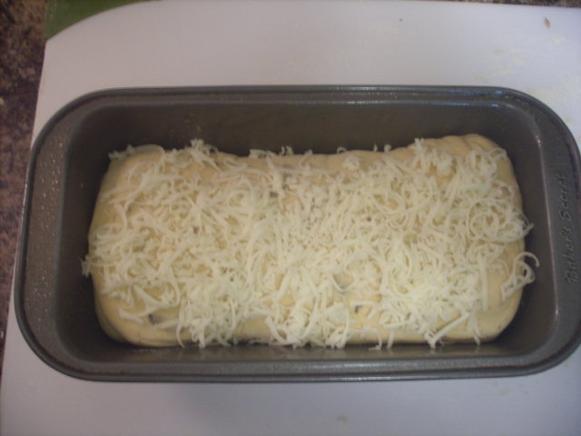 - Spray a loaf pan, add the dough and sprinkle with cheese
