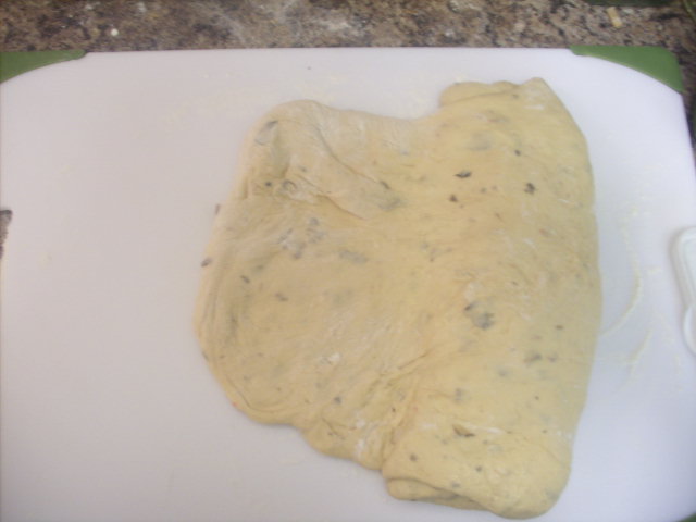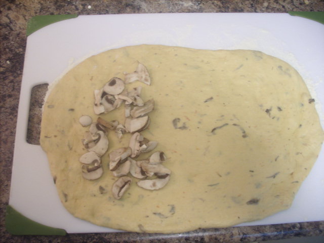 - Mix flour, salt, yeast, mushrooms, garlic and cheese. Add water and tomato sauce and knead in a stand mixer with the dough hook attachment for about 8 minutes